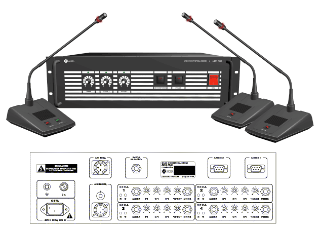 Отличительной особенностью конференц-системы является наличие встроенного Устройства Подавления Акустической Обратной Связи (УПАОС), повышающего устойчивость системы к электроакустическому возбуждению.